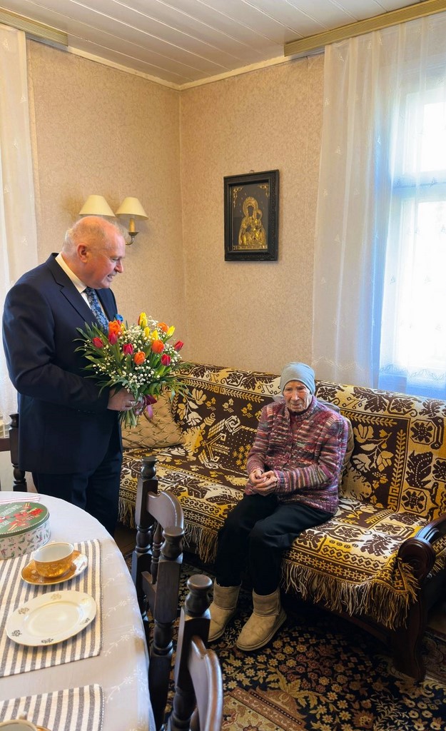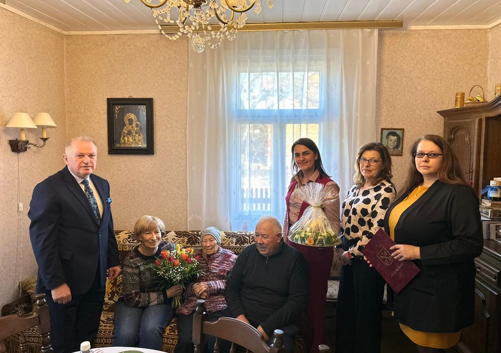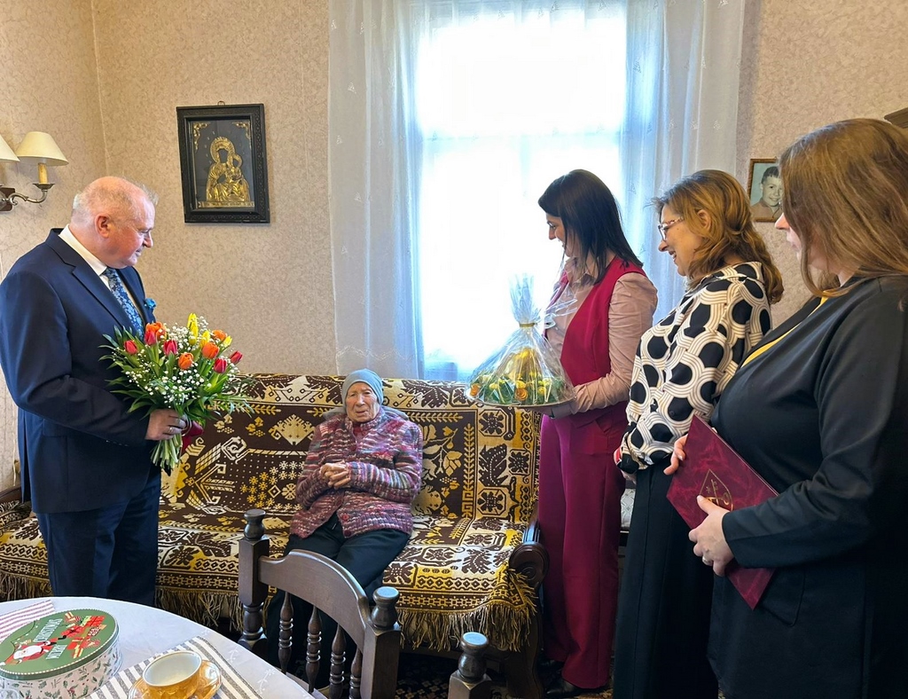 Z tej wyjątkowej okazji Jubilatkę odwiedzili Burmistrz Ciechanowca Eugeniusz Święcki, Zastępca Burmistrza Magdalena Kondraciuk, Skarbnik Gminy Jadwiga Koc oraz Kierownik Urzędu Stanu Cywilnego Emilia Malinowska, aby osobiście złożyć gratulacje i życzenia.